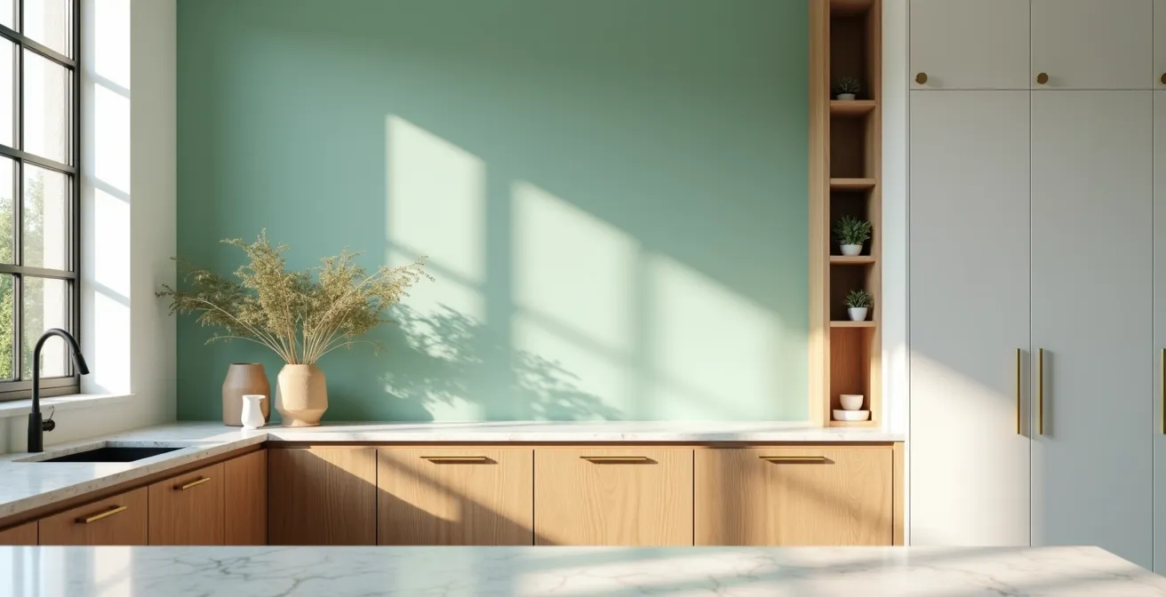 La quantité de vert menthe à déployer dans une cuisine ne relève pas du hasard. Une petite cuisine de 8m² orientée nord ne supporte pas la même surface colorée qu’un espace de 18m² baigné de lumière sud. Le principe de la masse colorée s’applique ici : trop de vert menthe dans un volume réduit sombre crée une saturation oppressante, tandis qu’une dose insuffisante dans un grand espace lumineux passe inaperçue.